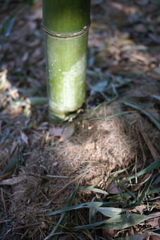 Dead bamboo will return to the soil in 2 to 3 years, but green bamboo, which contains glassy silica in its outer skin, takes 7 to 8 years to return to the soil, so it is crushed and sown in the bamboo grove.